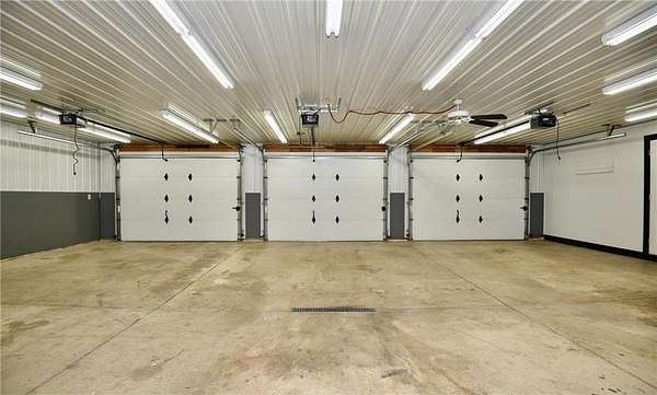 Attached heated and finished 3-stall garage/shop (30x38) with excellent lighting—ideal for storage or workspace. Two backyard patios (14x25 and 28x28) provide great outdoor entertaining space; larger patio previously accommodated an above-ground pool.