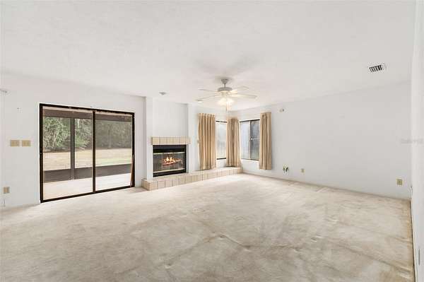 Additional features include a 3-car garage, wet bar, water softener, screened back patio, and multiple gathering spaces. While the home needs some updating, major systems include a 2013 roof and one of the home's two HVAC systems replaced in 2023. This property presents a rare opportunity to reimagine a spacious home on acreage in a convenient North Central Florida location--where original charm meets serious potential.