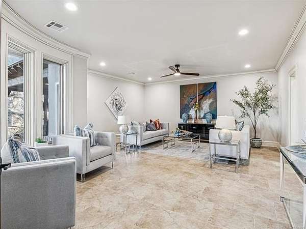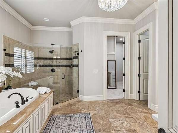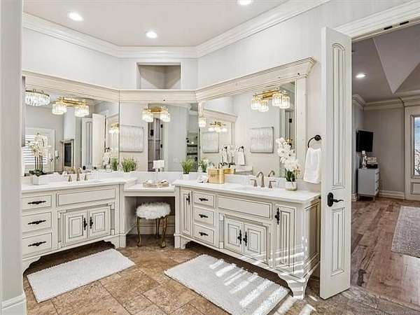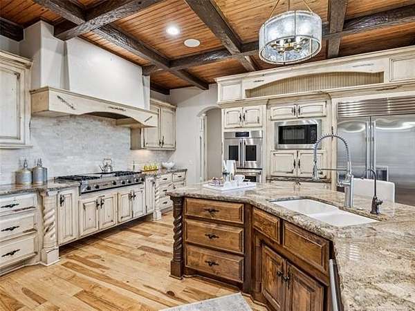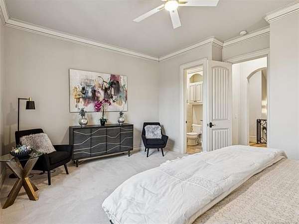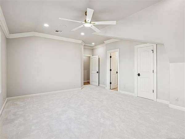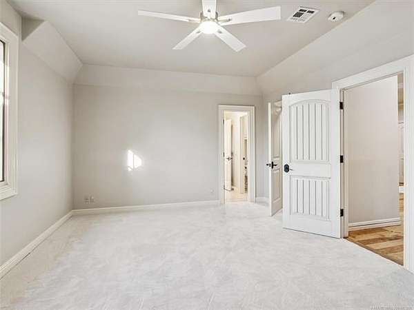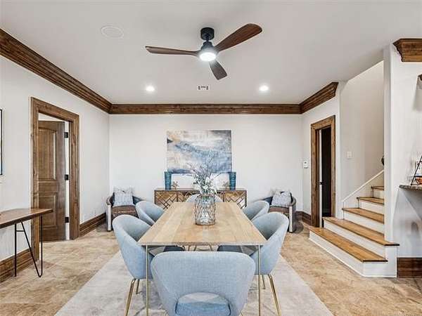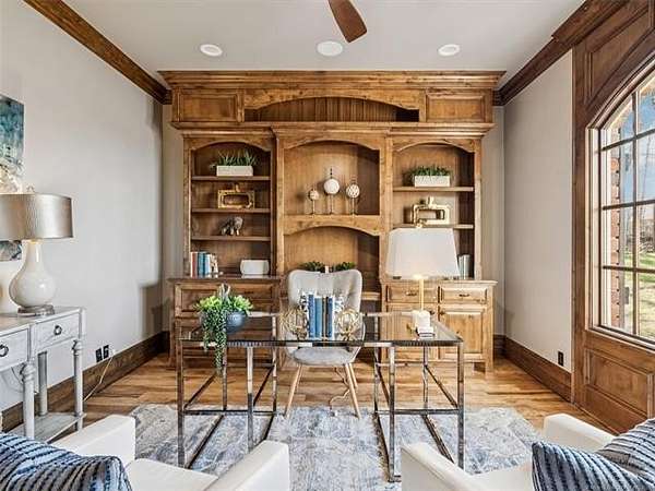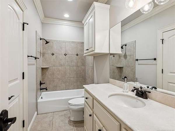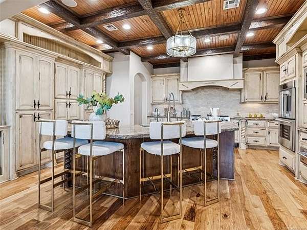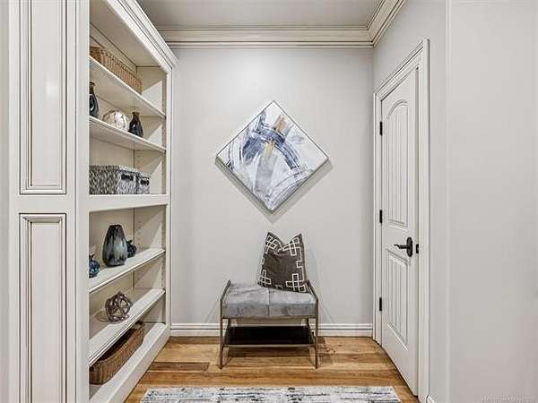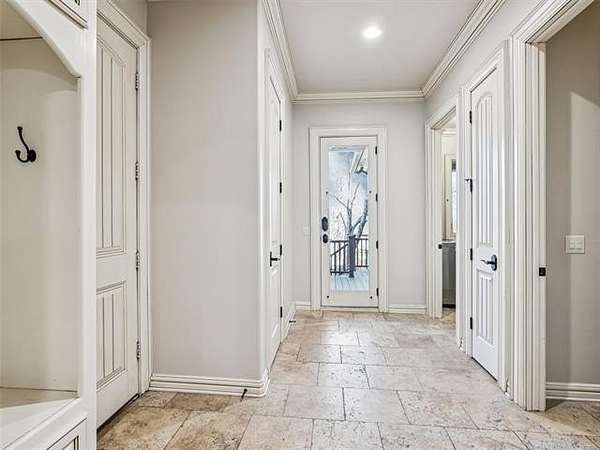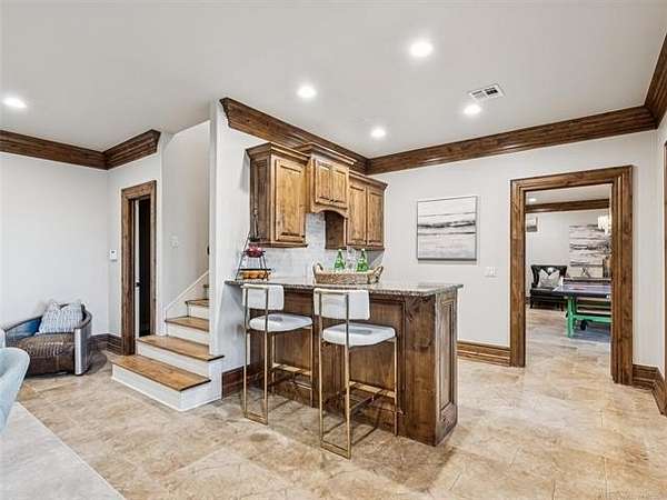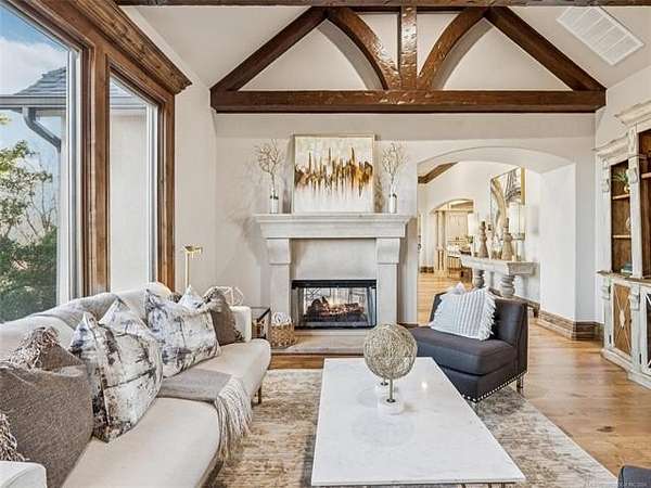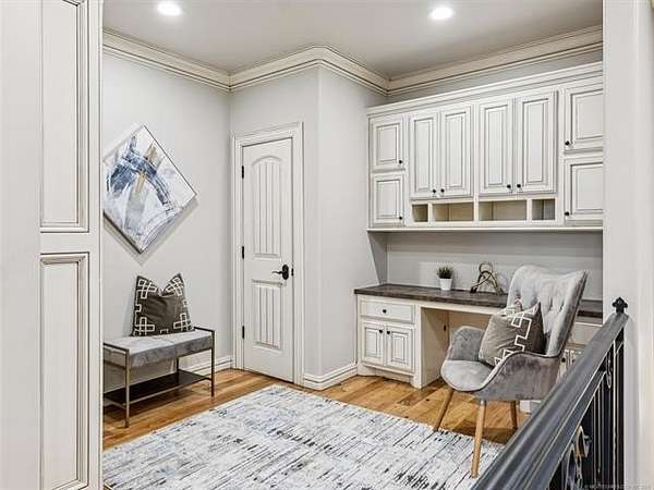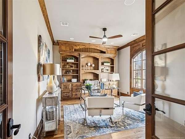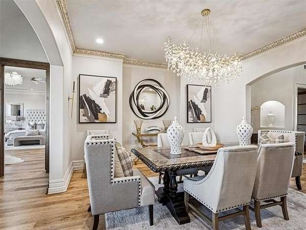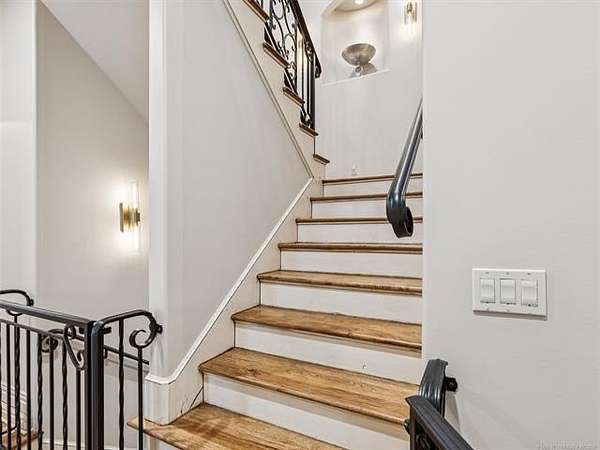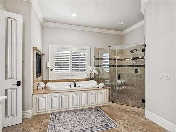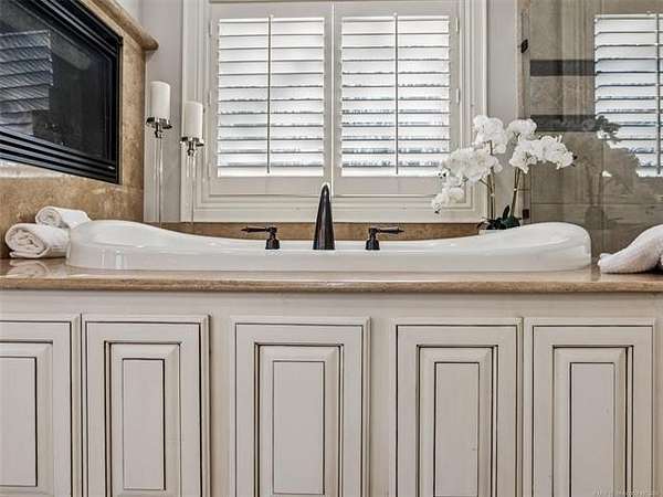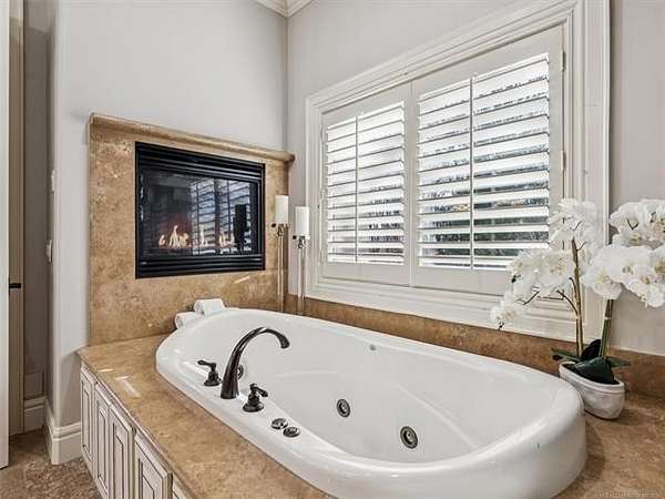 This one-of-a-kind enclave in Jenks is an estate resting on a cul-de-sac across nearly 2 acres w/ sweeping views stretching to the river. Thoughtfully built & meticulously renovated over past year, this home offers refined luxury across 3 expansive levels. Main level (2nd flr) showcases an elegant formal dining room with panoramic views; 2 private bedroom suites, a dedicated office, a chef's kitchen & 2 living areas. Primary suite is a sanctuary w/ serene vistas, FP, soaking tub, separate walk-in shower & lg walk-in closet. A 2nd bdrm offers its own private bath & walk-in closet; a wet bar/butler's pantry seamlessly connects formal & casual entertaining spaces. The kitchen has high-end appliances including an 8-burner range, double ovens, oversized island, abundant cabinetry & walk-in pantry + convenient access to the 4-car garage, side patio/drive, laundry room & half bath. Living spaces are anchored by a cast cement fireplace & walls of windows creating the feel of a luxury treehouse, immersed in views. The 3rd flr offers a loft-style seating area, built-in study nook, 3 lg bedrooms & 2 full baths- 1 bedroom ideal as a game room w/ dual walk-in closets. The lower level is designed for entertainment, featuring a wet bar or second kitchen, fully equipped theater room, game room, home gym & a spacious pool room that c/b a 6th bedroom. Outdoors, the property transforms into a private resort w/ a pool, hot tub & slide + a stone FP, pergola & outdoor kitchen. Renovations include: paint throughout, high-end carpet & padding, refinished & extended hardwoods, luxury lighting & fans, quartz countertops, upgraded fixtures, soft-close cabinetry, enhanced garage systems, new exterior lighting, a rainproof pergola, improved drainage, refreshed exterior finishes & a like-new pool: updated tile, stone coping, LED lighting, plaster & mechanicals. This is a rare opportunity to own a luxurious retreat designed for elevated living, unforgettable entertaining & lasting enjoyment.