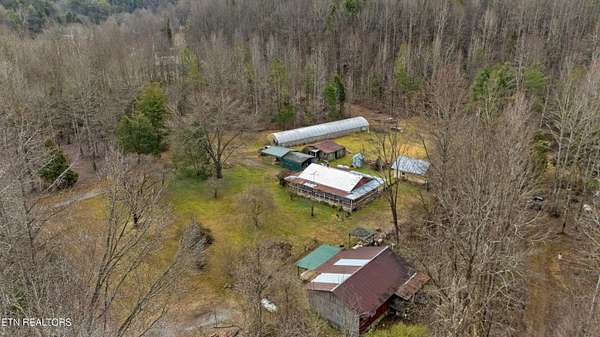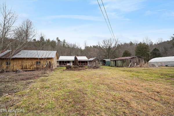 1223 and 1235 Rocky Flats Rd, Cosby Tennessee, a peaceful spot to make your own and call home !! Tucked into the beautiful landscape of Cosby, Tennessee this family built property sits on 2.14 flat, unrestricted acres, against the backdrop of mountains and across the road from Dunn's Creek. The setting is peaceful and unhurried, a place where generations of memories were made and where the next owners can begin to make their own with the same love and intention. The property includes TWO homes with 2 bedrooms, 1 bath each, both constructed from wood logged on site and milled locally. The main house features a wrap around porch whose beams were cut from American Chestnut trees and salvaged from an 1800's tobacco barn, a rare and sentimental touch that connects the past to whoever calls this place home next. Additional onsite structures include a commercial grade 20X100 greenhouse, formerly used to grow and supply all the plants to The Incredible Christmas Place, complete with a brand new heater conveying with the property uninstalled and ready for the new owner. A 20x40 workshop with its own separate septic system carries potential for conversion into additional living space. Two carports, RV parking, 3 onsite power poles, 3 septic systems, and a completely redone well along with many other interior updates, like new kitchens, floors, main house metal roof in 2021 which can all be found listed in the assets section on the MLS. With unrestricted acreage, two homes with short term rental potential, and a genuine connection to the land and its history, this property sits within easy reach of the Great Smoky Mountains and Gatlinburg, offering the best of both worlds: A peaceful retreat to come home to and one of the most beloved destinations close by. Property is located on a easy to drive road. Please enter at entrance flanked by two lions and the For Sale Sign. Sold AS-IS