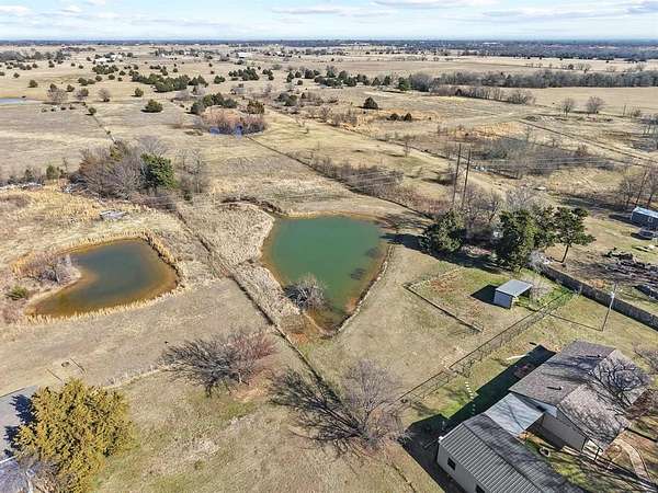 Set on a rare, unrestricted 5-acre property, this home invites you to create a lifestyle that fits you -- whether that's space to roam, room to build, or freedom to enjoy the outdoors without limits. Two peaceful ponds. The 3-bedroom, 2-bath home is warm, welcoming, and move-in ready, with a spacious living area, nearby dining, and a kitchen that is updated, plenty of cabinets and dual access to dining or outdoors. Primary bedroom with windows, walk in, and en suite bath. This 1382 square foot house was well designed to use the space. Right outside the comfort of your home, is acreage your own! You have ponds, workshop, mature trees and just imagine the possibilities. The cross-fenced acreage is perfect for some horses even a corral are and loafing shed. Also cows, chickens or those horse powered or electric toys. The detached 24 x 22 garage-workshop is what our buyers ask for often. Steel framed, concrete floor, electric, and also a 2 car carport. With no restrictions, your freedom is built in. Keep animals, light fireworks, create a mini-farm, build a guest house, or simply enjoy the peace and privacy of open land -- this property adapts to your vision, not the other way around. Tucked into a quiet country setting yet within easy reach of town, this is the rare blend of serenity, space, and opportunity .