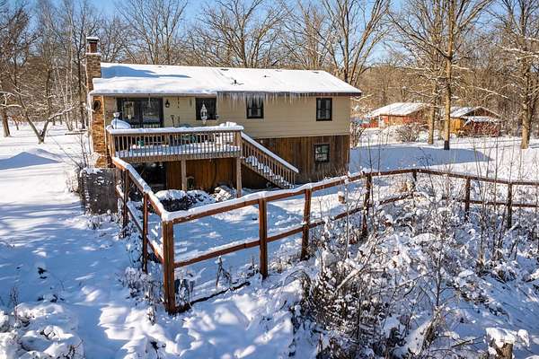 A sign marks the dead end of a lazy gravel road just outside Milaca, but that's not quite accurate. See, this is actually where adventure begins. Ten acres of undulating terrain, hobby-farm amenities and a move-in-ready home set the scene, all immediately along the rippling Rum River. It's the kind of naturally secluded spot that's teeming with wildlife by way of its dead-end location, almost like the deer and turkeys read the sign. Inside the heart of the homestead is a 4-bedroom, 2 bathroom house, which features an elevated deck overlooking the backyard pond and a walkout basement underneath. An array of pastures, sheds and buildings create the type of rural homestead perfect for small livestock, chickens and a garden. Privacy like this doesn't shout; it whispers through the trees, delivering that rare equilibrium of accessibility and isolation. Milaca's small-town amenities are a short drive away, yet the property feels worlds apart. Whether you're drawn to the therapeutic pull of riverfront stewardship, the self-sufficiency of a hobby farm, or simply the chance to unplug amid nature's quiet abundance, this 10 acres hits a sweet spot unlike others. Make your home where the road ends, but the Rum River flows uninterrupted.