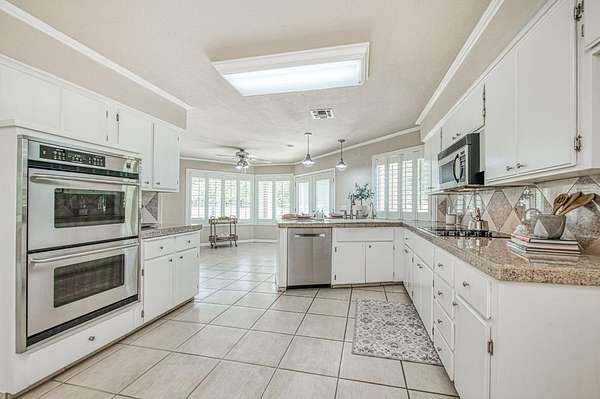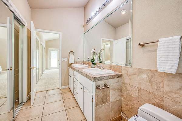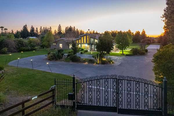 Tucked away behind a private gate on a sprawling lot of nearly 2.5 acres, this home offers the rare combination of space, utility and a prime location within the acclaimed Clovis Unified School District. The thoughtfully designed floor plan features high ceilings and lots of windows to let the natural light in. The 4 bedrooms and 2.5 baths are all on one level with only the loft upstairs. The loft would function great as an office, gym or TV room. At the heart of the home is the grand living room with a fireplace and large picture windows looking out to the front yard. There is also an additional living area plus casual and formal dining. The kitchen is equipped with stainless steel appliances, double ovens, and breakfast bar. The large solar system offers energy efficiency while the massive backyard gives the kids plenty of room to roam or for entertaining large parties. There are fruit trees, lots of grass and loads of space to plant a garden or build an ADU. Call for a private tour today! Bed/bath count differs from tax records. Buyer to verify.