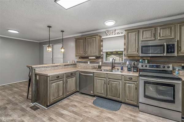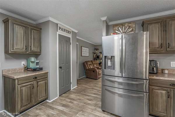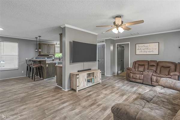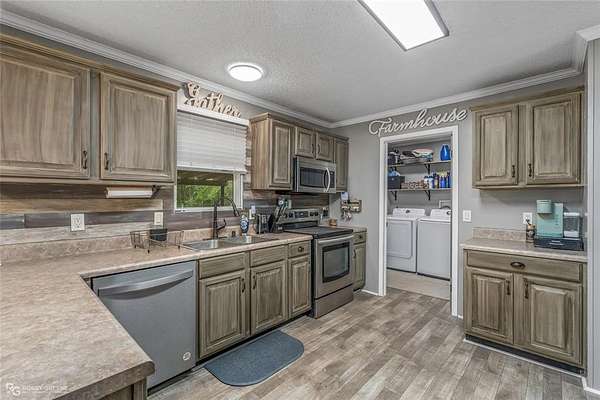 Well-maintained 3BR 2BA home is situated on 3.6 acres. Property features a gated driveway, covered parking extending the full length of the home, and a shop for additional storage or workspace. Yard is fenced in. Interior offers a desirable split floor plan with a private primary suite featuring an en suite bath complete with a standalone soaking tub and separate walk-in shower. Secondary bedrooms are located on the opposite end of the home along with a well-appointed full bathroom. The kitchen and living area feature an open-concept layout, creating a spacious and functional flow ideal for everyday living and entertaining. Kitchen includes ample cabinetry, bar seating, and stainless steel appliances, including an electric range, built-in microwave, and a newer dishwasher (6 months old). Recent updates include fresh paint and touch-ups, new subfloor, and new linoleum flooring throughout , plus new carpet in two bedrooms. Additional improvements include two new ceiling fans and new smoke detectors. Major system updates include a roof replaced in 2019, new AC installed July 2022 with approximately 7.5 years of transferable warranty remaining, and new skirting. Washer and dryer to remain. Refrigerator to remain if desired by buyer. Move-in ready with acreage do not miss this amazing home!!