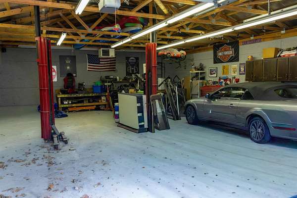 Experience the tranquility of country living in this spacious home, privately set back 500 feet on 4 acres. The property's rear borders protected state land, offering lasting privacy and an undeveloped backdrop. Major system updates provide peace of mind, including a geothermal HVAC system (2022), new well pump (2021), and a new septic system, roof, PEX water lines, and tankless water heater - all completed in 2025, with supporting receipts and documentation available. Step out onto the expansive 20' x 44' Trex deck, perfect for entertaining, morning coffee, or simply taking in the peaceful surroundings. The large unfinished basement, with 10-foot ceilings, offers tremendous potential for additional living space, a recreation area, or home theater. It is protected by a French drain surrounding the foundation, connected to an indoor sump pump. Hobbyists and car enthusiasts will love the oversized 30' x 40' garage featuring 9' high garage doors, 10' interior height to the trusses, a two-post 7,000 lb. car lift, electricity, water, and never used heater that requires a propane connection - perfect for a workshop, "man cave", or hobby space. With privacy, space, and thoughtfully updated systems, this home truly has it all!