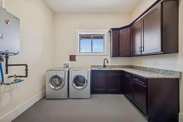 - Built-In Gas Range, Dishwasher, Double Oven, Dryer, Gas Oven, Microwave, Refrigerator, Stainless Steel Appliance(s), Washer
