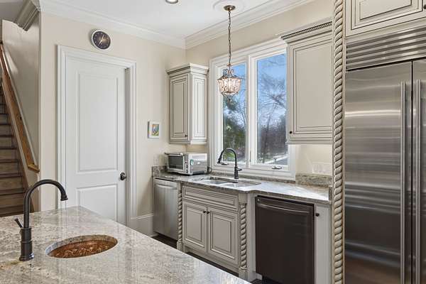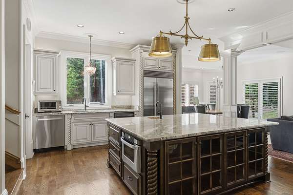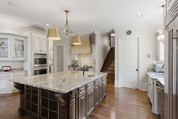 - Dishwasher, Disposal, Double Oven, Electric Oven, Gas Range, Ice Maker, Microwave, Oven, Refrigerator, Stainless Steel Appliance(s), Trash Compactor