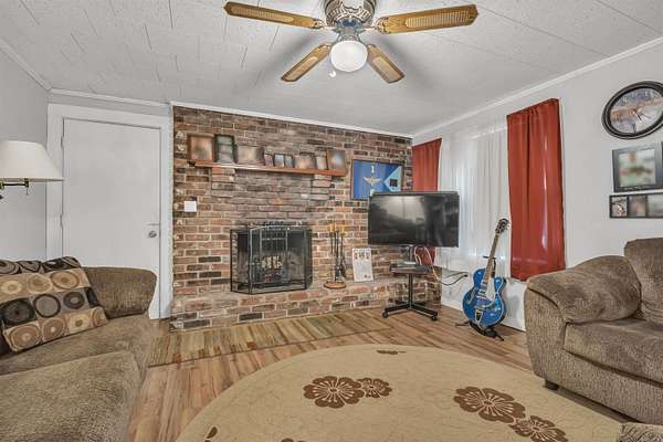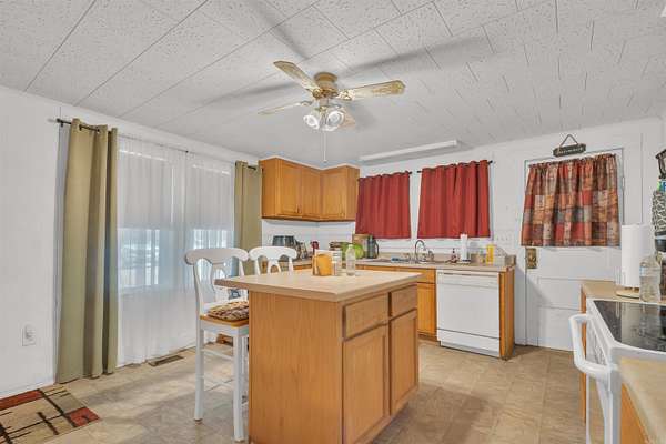 - Ceiling Fan(s), Dryer Connection-Electric, Fireplace, Kit Counter-Formica, Walk-In Shower, Washer Connection