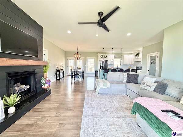 Hilltop views. 10 acres. Move-in ready. Built in 2022. This 4-bedroom, 2-bath home offers the kind of peaceful setting you don’t come across often with elevated scenic views, open space, and room to live the lifestyle that fits your family. Inside, you’ll find an open-concept layout filled with natural light, 9-ft ceilings, fireplace, hardwood floors, granite countertops, and stainless steel appliances. The primary suite stands out with a large walk-in closet, tiled shower, and freestanding soaking tub. The finished basement adds valuable living space with waterproof LVP flooring and the option to add a kitchenette, perfect for guests, extended family, or flexible use. A concrete safe room provides added security and storage. Attached 2-car garage. Large mudroom. Space, privacy + functionality all in one. Outside is where this property really separates itself covered front porch, a full-length back deck built for the views PLUS 10 acres ideal for horses, recreation, or a small farm. Bonus opportunity: Expand your investment with an additional 4 acres and mobile home available for purchase. Contact listing agent for full details. Listing agent is owner.