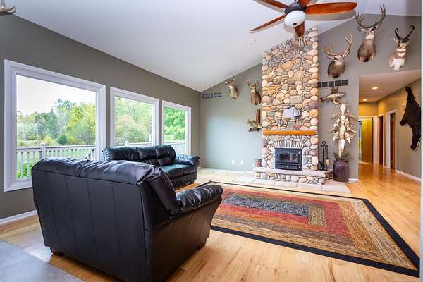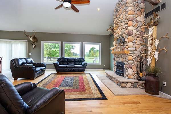 *COUNTRY LIVING AT IT'S BEST * Gorgeous, energy-efficient home in Gaines! As you enter, you will be greeted by the cozy living room with oak wood flooring and soaring ceilings. Notice the amazing fireplace and a wall of windows in the spacious great room, making it the perfect spot for creating lasting memories with loved ones & friends. Spotless kitchen comes with recessed lighting, tile backsplash, granite counters, and plenty of white cabinetry. Deep full basement. 30 x 40 Pole barn. There is a path that runs the perimeter of the property for quiet walks or ATV. Abundance of Deer & Turkey frequent the property.