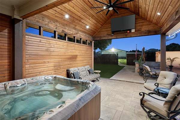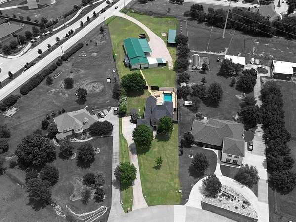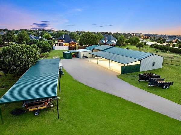 Rare opportunity in the heart of Prosper! This almost 2-acre gem features a spacious 4-bedroom home which is complemented by 2 large barns, including office space, and extensive parking, making it turnkey for small business owners, event planners or entrepreneurs.This is a rare chance to create your own private retreat and thriving workspace all in one. Four garage parking spots and up to 16 additional parking areas including covered RV parking with hookup. No HOA. This unique home allows you to enjoy wide open spaces while staying close to schools, shopping, dining, and entertainment; zoned to highly sought-after Walnut Grove High School. Host unforgettable gatherings with ease in this stunning outdoor retreat--perfect for entertaining 200 of your closest friends.Stunning oversized pool with tanning ledge. Fully equipped outdoor living area. Private firepit with fire glass and seating; fire bowls over the pool; Sonos sound system.Surrounded by 8 ft stucco privacy fence. Dave Williams 2 story custom home with its own attached 2 car garage and private dog run. Handscraped hardwood floors. Fresh interior paint. Island kitchen with double ovens open to family room and nook. Study off entry, primary bedroom down, all other bdrms upstairs. Balcony overlooking pool area. Jellyfish lights on house. Impact Resistent roof added in 2024. Both barn roofs replaced 2024. Spray foam insulation in house and parts of barn. Experience the best of both worlds -- luxury, space, and comfort with easy access to everything Prosper has to offer. Please see add'l info in Documents, too much to list here.