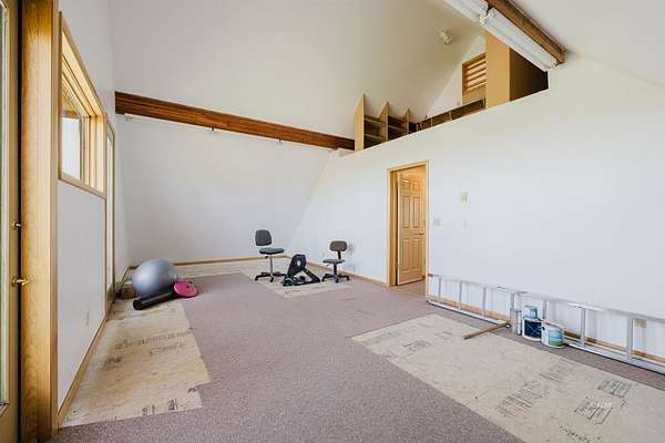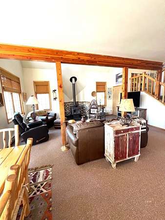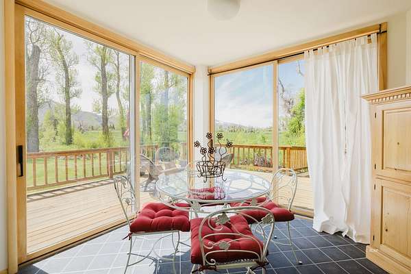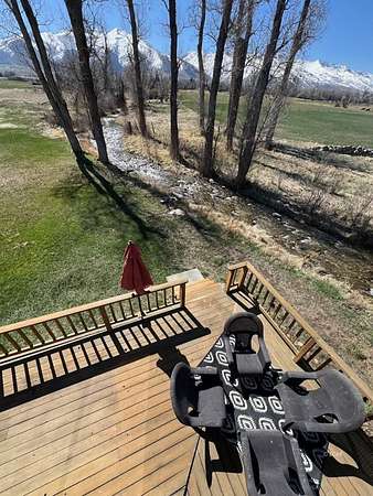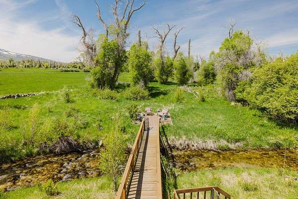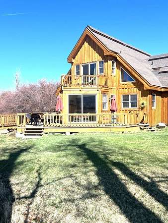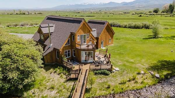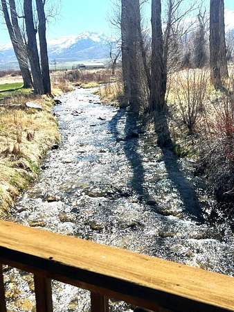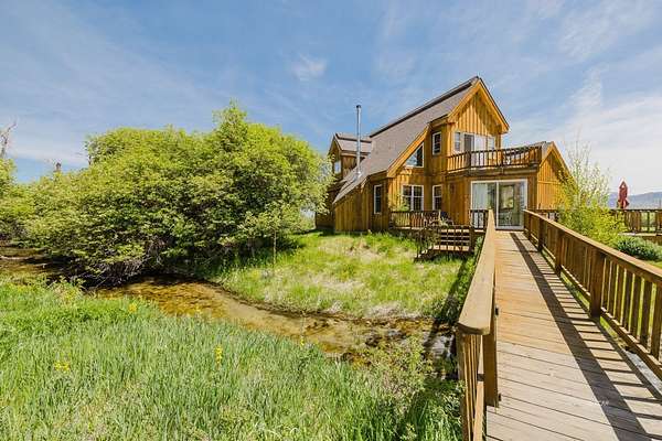 SIT ON THE EXPANSIVE DECKS, WATCH AND LISTEN TO THE CREEK FLOW BY! This custom home is full of light and awesome vistas to enjoy. The spacious main level has that open living area we all love plus a beautiful sun room to sit and enjoy the outdoors summer or winter. Kitchen with loads of cabinets, double oven, large breakfast bar and counter area. There are 2 bedrooms, full bathroom, living room, dining area, kitchen, sun room and laundry room on the main level with entry to the 897 foot deck abutting and overlooking the creek. Upstairs is the delightful master bedroom with private upper balcony overlooking the meadow and creek. The additional bonus room is large and roomy with its own private balcony. There is an attached garage with direct access to the interior plus a detached shop/garage with 1344 square feet (4 car garage) and machinist/mechanics tools included. The driveway is paved from the home to the county road. 12.987 Plus deeded water rights, irrigated fenced acres. Walking bridge over creek to patio.