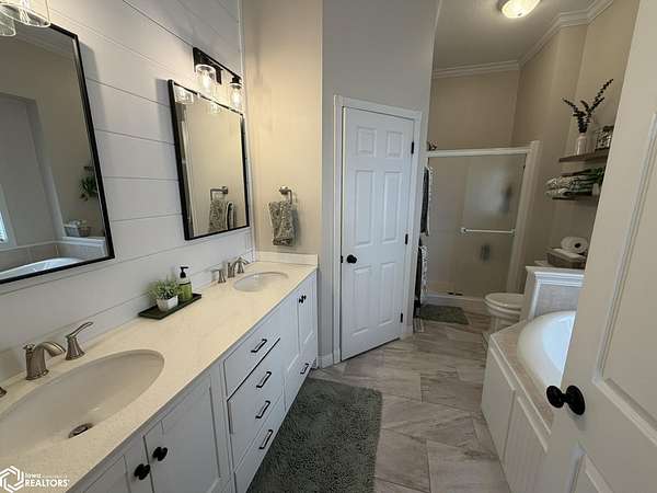 This beautifully maintained 1.5-story home, built in 1998, offers 2,384 square feet above grade and is situated on a peaceful, private wooded lot that provides a serene backdrop for everyday living. Move-in ready and thoughtfully updated throughout, this residence blends modern conveniences with timeless appeal. Recent updates include fresh exterior paint (fall 2025), new vanity tops in the basement and upper-level bathroom (fall 2025), new/refaced kitchen cabinets with added cabinetry doors on open shelving (fall 2025), a new dishwasher and microwave (2024), and new stylish black interior door knobs and hinges (2020). The master bathroom features a new vanity with an added sink (2020). New light fixtures grace the main living room, dining room, and kitchen (2023), complemented by replaced exterior light fixtures the same year and a convenient new exterior outlet on the front porch (2025). Inside, you'll find new luxury vinyl plank flooring and new carpet throughout most of the home (fall 2020), with fresh interior paint in all rooms (fall 2020) except the basement family room, which now boasts attractive new ship lap. Some elegant crown molding adds a refined touch, and the home offers excellent storage space throughout. Proudly presented in true move-in condition, this updated home is ready for its next chapter. Enjoy the privacy of the wooded setting while benefiting from numerous modern improvements that make daily life effortless and enjoyable.