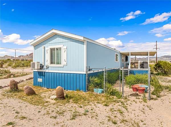 Est $883/moSituated on the westerly side of Golden Valley, nestled against the Black Mountains. Short distance off paved Egar Road. Recent updates include kitchen cabinets, laminate flooring through out, windows, doors, metal skirting and newer HVAC. Mini splits added in each bedroom to add a bit more energy efficiency! Hauled water area.