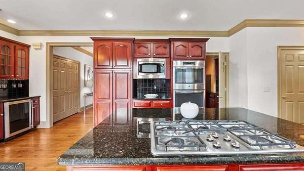 Welcome to your private home sites near downtown Milton with 3.82 acres of serene, unrestricted living with no HOA. This picturesque Southern Colonial estate offers the perfect blend of charm, self-sufficiency, and elegance. Imagine gathering fresh eggs from your own chicken coop, growing an organic garden, steps from your back door, and watching your animals roam freely, all while being just minutes from Milton and Crabapple's shops, schools, and restaurants. The open greenspace, mature trees, natural pond, and fenced saltwater pool create an inviting backdrop for outdoor living. Whether you dream of a thriving vegetable garden, a small hobby farm, or simply a quiet retreat surrounded by nature and wildlife, this property offers the space and freedom to make it happen. Meticulously designed by its original owners, who handpicked the floor plan from Colonial Homes Magazine, this Southern Colonial Greek Revival features timeless craftsmanship and thoughtful details throughout. There are spacious and versatile living areas with multiple wood-burning fireplaces and custom millwork. Gourmet kitchen with real Cherry cabinetry, granite countertops, stainless steel appliances, large island with gas cooktop with downdraft, wine cooler, and oversized walk-in pantry. Elegant entertaining spaces including a large Formal Dining Room with Brick Fireplace, Butler's Pantry with Cherry Cabinetry and copper sink. The Peaceful owner's suite with French doors, soaking tub, separate tile shower, double vanity, and walk-in closet. Finished basement with full bath that connects inside and has direct pool access, perfect for guests or entertaining. A bedroom could easily be closed in but the open floor plan is perfect for entertaining, media space, games and more. The detached 2-car garage features a large workshop that is ideal for wood working or storing items for your homestead. The finished living space above, ready for a guest suite, studio, or home office is stubbed in for a kitchenette, full bath and laundry area. Enjoy evenings on the covered deck overlooking the pond and take in the stunning sunset views while grilling out, the gas line already in place. The large circular driveway offers ample parking for gatherings, equipment, boat or an RV. This is more than just a home - it's a lifestyle. A place where you can live off the land, raise animals, garden, and breathe deeply in your own private sanctuary, free from HOA restrictions. As well as enjoy the high end living just a short 10-minute drive with concerts at Ameris Bank Amphitheater, shopping, dining or ice skating at Avalon, downtown Alpharetta with over 250 shops and 200 restaurants in a 5-mile radius, and so much more! Alpharetta was recently named a top 10 city to live in in the United States! Come experience the best of both worlds: the peace of rural living and the convenience of downtown Milton just up the street, plus downtown Alpharetta and Roswell nearby. Your dream homestead awaits!