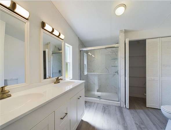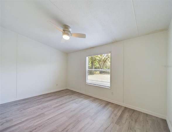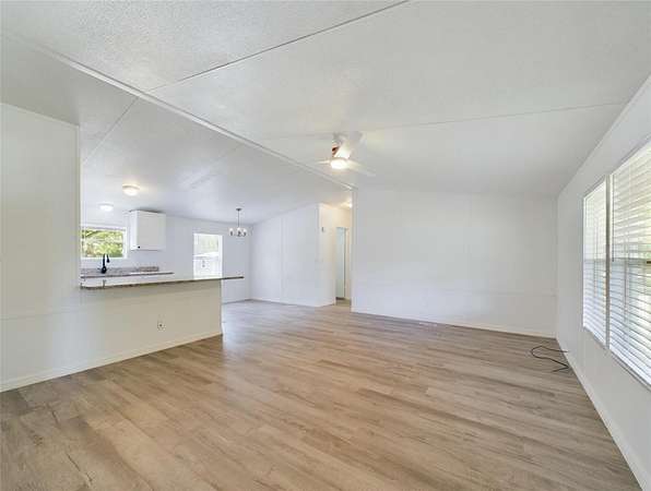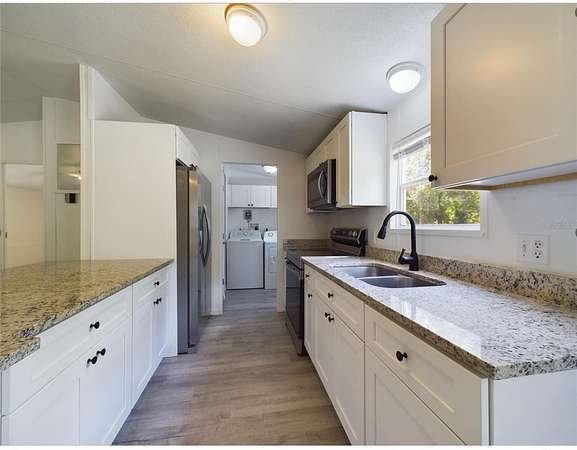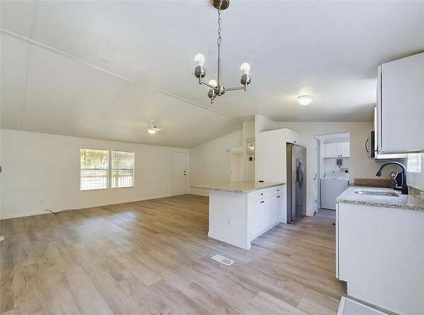 A paved private entrance leads you to the beautifully remodeled mobile home, complete with a welcoming front porch ideal for enjoying sunsets while watching your horses graze. Inside, you'll find three bedrooms, two bathrooms, all with laminate flooring, plus a modern kitchen featuring granite countertops.