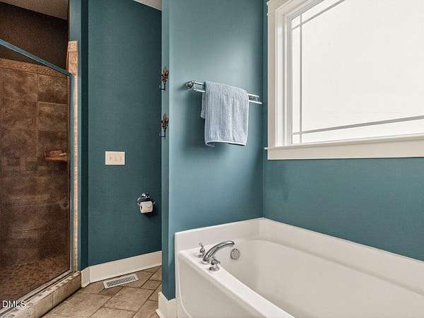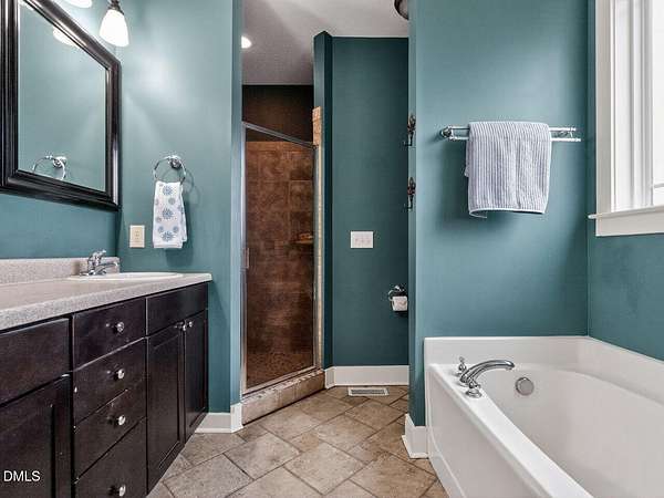 - Bathtub/Shower Combination, Ceiling Fan(s), Entrance Foyer, Kitchen Island, Primary Downstairs, Soaking Tub, Walk-In Closet(s), Walk-In Shower