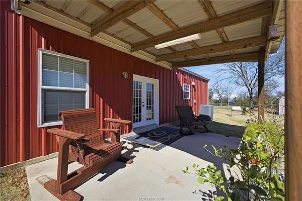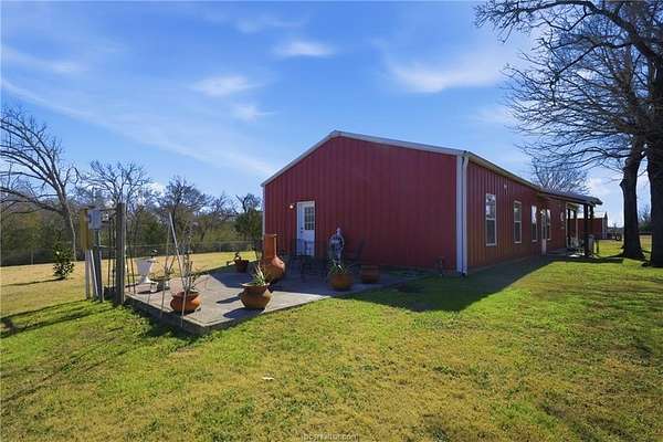 Situated on 5 private acres, this property offers peace and quiet, country living, and plenty of room to spread out. The 2014-built barndominium features 3 bedrooms and 2 bathrooms with a flexible, open layout ideal for rural living, homesteading, or a work-from-home lifestyle. A private office off the primary bedroom provides a quiet space for remote work or study Exterior highlights include a 30x30 shop with electricity, two roll-up garage doors, great for easy access to equipment or rec vehicles. Additional features include a 472-foot water well, two nicely sized patios, a 2-car carport, offering ample space for vehicles. You'll also find mature oak trees scattered on the property and a gorgeous magnolia tree. Ideal for buyers seeking acreage, privacy, no HOA, and versatile outbuildings.
