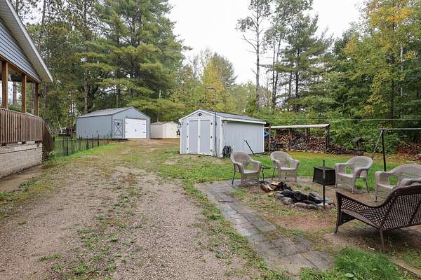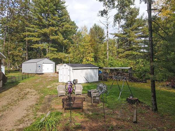 This inviting property sits on 2.07 wooded acres in the Town of Mountain, Oconto County. The home features 2 bedrooms, 1 full bath, a cozy living room, and a functional kitchen--ideal as a year-round residence or weekend retreat. Outside, enjoy a 13' x 15' screened pavilion, a fire pit area for gatherings, and plenty of storage with four sheds plus a 26' x 30' metal building for boats, ATVs, or workshop space. Located near Anderson Lake, you'll have easy access to fishing, boating, and all the recreational opportunities of the Northwoods.