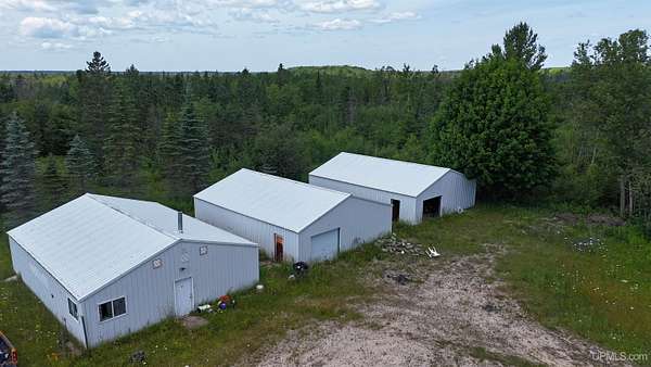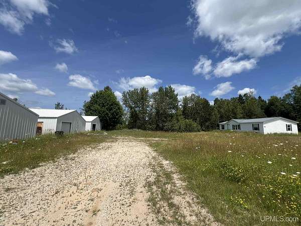 This 80 acre parcel sits in a prime location just off US Highway 2 in Blaney Park, and features three 30x40 garage/outbuildings and a 2 bedroom home with endless potential for future use. The outbuildings and home will definitely require some TLC and cleanup, but for the right buyer, this could be a great starting point for your dream rural home site. The location in Mueller Township offers opportunity to pursue agricultural ventures that would be a challenge elsewhere. Condition of appliances and systems in home unknown, property being sold as-is.