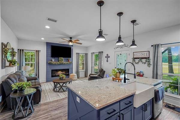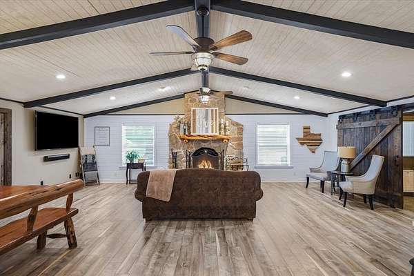 Welcome to this rare ranch estate offering modern living, income potential, and resort-style amenities. Enter through a commercial-grade gated entrance with pipe fencing and a tree-lined drive that sets the tone for this one-of-a-kind property. The land is mostly cleared, cross-fenced for cattle, and in hay production with Tifton 85 in back meadows and coastal Bermuda up front. At the heart of the property is a stunning 5 +-ac stocked lake with fishing pier and pavilion, creating the perfect setting for relaxation and recreation.