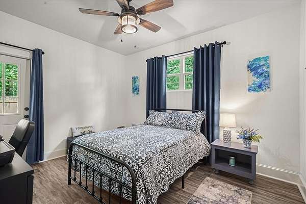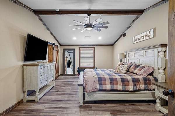 The modern ranch-style main home offers 4 BR, 3.5 BA, plus a large bonus room that can serve as a 5th BR. With two spacious living areas, open-concept layout, fresh paint, abundant natural light, and recently installed wood laminate flooring, the home feels like a retreat. The renovated kitchen features custom cabinetry, quartz countertops, and a large walk-in pantry. The primary suite has been completely remodeled with a walk-in shower and custom walk-in closet. Additional updates include patio lighting, trimmed porches with added lights, and a mudroom with custom storage. The main house also includes a 60' Wi-Fi tower providing internet and TV service.