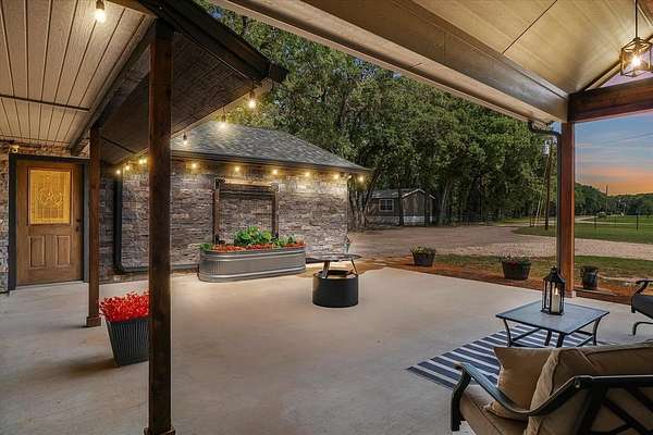 - Basketball Court, Covered Patio/Porch, Fence, Fire Pit, Outdoor Living Center, Playground, Rain Gutters