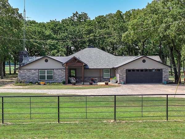 Discover a rare Texas ranch estate designed for modern living, income opportunities, and lifestyle amenities. A commercial-grade gated entrance with pipe fencing and a tree-lined driveway provides privacy and curb appeal from the moment you arrive. The acreage is primarily cleared, cross-fenced for cattle, and currently in hay production. A scenic 5+- acre stocked lake with fishing pier and pavilion anchors the property, ideal for recreation, relaxation, and outdoor entertaining.