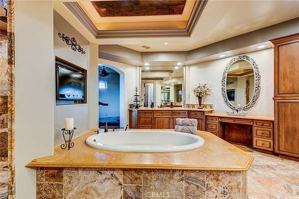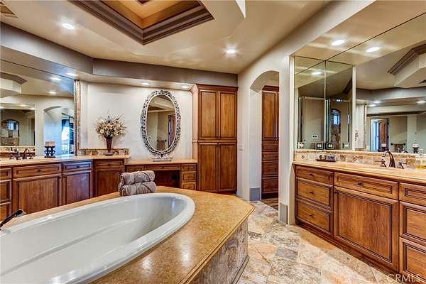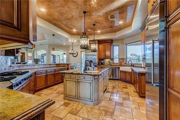 *Have you been waiting for a house that has the WOW FACTOR? Here it is, this Truly ONE-OF-A-KIND ESTATE Style Home in East Oak Hills has it all!! This Stunning TUSCAN-STYLE Estate is located on a CUL-DE-SAC in one of the most DESIRABLE AREAS, featuring PAVED STREETS, natural gas, mature landscaping, and a BLOCK WALL THAT surrounds the ENTIRE PROPERTY*Impressive curb appeal with real rock veneer, heavy crown cornice, custom corbels, paver driveway and walkways, stamped and colored concrete, wrought iron gates, and a GRAND Steel Double-Door entry*Looking for GARAGE SPACE?? Car lovers and hobbyists will appreciate the attached OVER SIZED 4 CAR GARAGE, PLUS a massive 2,500 sq ft DETACHED STUCCO GARAGE with RV-height access/doors, that PULL THROUGH to the back yard & RV CARPORT*The RESORT-STYLE backyard is built for entertaining, featuring a GROTTO POOL with WATERSLIDE, SPA/JACUZZI, along with a BUILT-IN OUTDOOR BBQ area*Covered PATIO, with TV's*Inside you'll find LUXURY FINISHES throughout, including travertine flooring, travertine showers, marble accents, double bullnose granite, knotty pine doors and cabinets, VENETIAN ACRYLIC CEILINGS & Wall, Real Wood wainscotingThe upgrades are endless*The home also features a chef’s kitchen with BUILT-IN Appliances and ISLAND, WET BAR & GAME ROOM, two offices with CUSTOM BUILT-INS, stacked stone fireplace with wood-burning stove, and gas fireplaces in the dining room and primary suiteThe primary suite is a true retreat with a sitting area (ideal nursery/gym), jacuzzi tub, walk-in shower, dual vanities, and a huge walk-in closet, with MORE BUILT-IN Cabinets/Dressers *A RARE East Oak Hills estate offering, LUXURY, SPACE, and incredible entertaining amenities — All within just a few VERY SHORT MINUTES from the 15 Freeways, this one is TRULY A MUST!