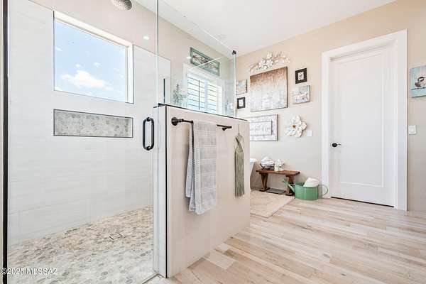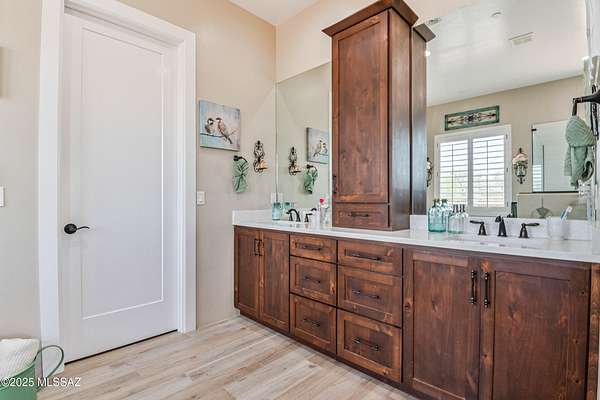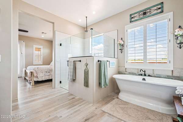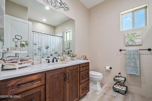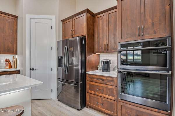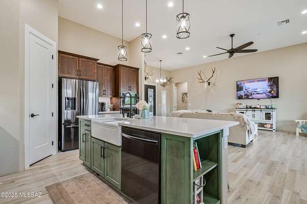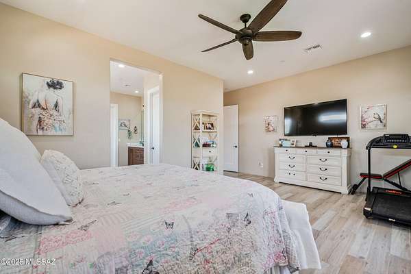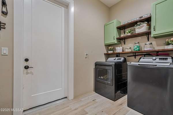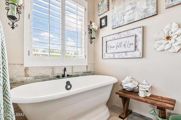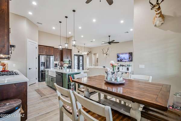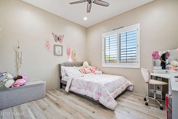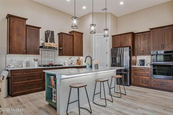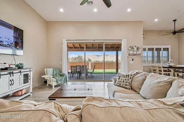 Stunning 2023 custom 3 bed, 2 bath + den home on nearly 5 acres with breathtaking views of Rincon Valley and Saguaro National Monument East. A welcoming courtyard entry leads into a bright, open split-bedroom floorplan with high ceilings and designer finishes throughout. Oversized, air-conditioned 2-car garage is perfect for projects or storage. No HOA-bring your RVs, trailers, horses, and toys! Enjoy a landscaped yard with artificial turf, kids' play area, and a full-length covered patio. Enjoy the peace of a beautiful rural setting where you feel worlds away from the hustle and bustle-yet you're just minutes from the conveniences of town and great schools. The perfect blend of privacy and accessibility. Endless potential to expand on this private Rocking K property.