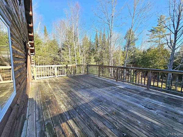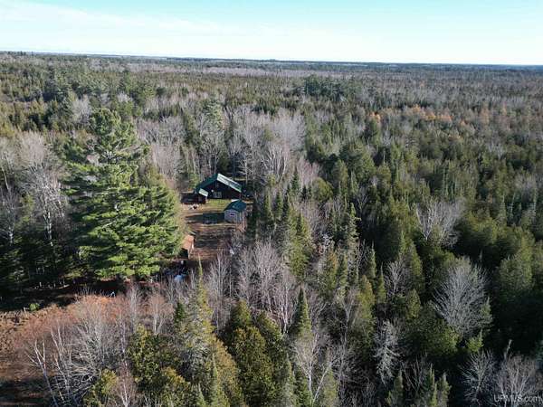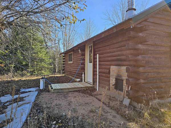 Escape to your own private 20-acre retreat, bordered on two sides by the Hiawatha National Forest and surrounded by thousands of acres of federal land. This rare parcel--one of only four private tracts in the entire area--offers unmatched seclusion and direct access to endless outdoor adventure. The cozy log cabin features a kitchen, living room with woodstove and propane space heat, a bedroom, a sleeping loft, a sauna, and an indoor toilet for added comfort. A clever water system allows you to warm the sauna, run the pump, and fill a water tank positioned above the sauna, where it heats and gravity-feeds into the shower head. Enjoy elevated views from the large deck with a sliding door, perfect for taking in the peaceful scenery and frequent wildlife. The property includes a drilled well, a spacious storage shed that houses the generator, and an outhouse with a covered area ideal for preparing game after a successful hunt. Trails run through the land, creating easy access for deer blind setups and offering excellent ATV and snowmobile riding, with direct trail access from 2231. Centrally located just off Highway 13 between Escanaba and Manistique, this is the ultimate Northwoods escape for those seeking privacy, recreation, and the beauty of Michigan's Upper Peninsula. Property must be shown by a licensed Real Estate agent, so please do not trespass.
