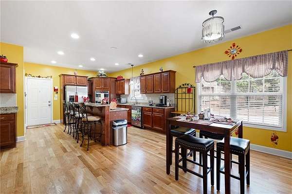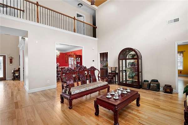 Welcome to this stunning executive estate situated on a large lot in a beautiful, highly sought-after enclave of just 14 executive homes. From the street, the home offers impressive curb appeal, but you must see inside to appreciate just how spacious this home is and how large all of the rooms are! Stately double entry doors open into an elegant two-story foyer filled with natural light, soaring ceilings and beatiful gleaming hardwoods throughout the main and upper levels. The banquet-sized dining room is perfect for hosting holidays, celebrations, and making memories! The impressive two-story great room features a beautiful coffered ceiling and a dramatic wall of windows, creating the ideal space for entertaining. Just off of the great room, the spacious kitchen is designed for both functionality and style. It features a large island with breakfast bar, a walk-in pantry, abundant stained cabinetry, and expansive granite countertops. Convenience continues with the laundry room and a three-car garage that enters directly into the kitchen. The kitchen and breakfast area open to the inviting family room with a beautiful stone fireplace and direct access to the expansive upper deck. The flow of the floorplan is designed for both everyday comfort and grand entertaining and offers a seamless flow throughout the main living area! Privately located in its own wing, the expansive primary suite is a true retreat. Featuring a sophisticated double tray ceiling and a versatile sitting room behind glass French doors, this serene space can serve as a private office, reading lounge, nursery, or media retreat. The luxurious spa-inspired bath offers dual vanities, an oversized jetted soaking tub, a spacious shower, and a huge walk-in closet. Upstairs, an elegant catwalk overlooks the great room, enhancing the home's open architectural design. The upper level features three generously sized secondary bedrooms and two full baths, providing comfortable accommodations for family and guests. The fully finished terrace level offers exceptional versatility and entertainment possibilities, complete with a bar and entertaining area, large media room, exercise room, office space, full bath, and additional sleeping quarters, as well as storage. This level opens onto a lower deck, extending the home's living and entertaining spaces to the outdoors. The spacious backyard also includes a matching outbuilding that provides excellent storage for lawn equipment, tools, and more. Priced below recent appraised value, this exceptional property offers an incredible opportunity. Don't miss your chance to make this remarkable home your forever home-schedule your private showing today.