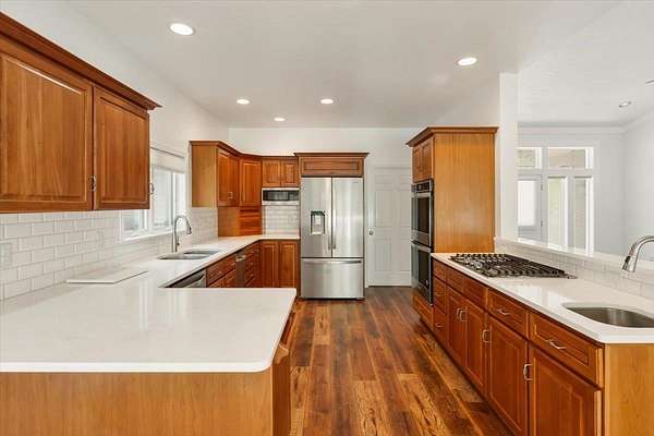 - Cooktop, Dishwasher, Double Oven, Garbage Disposer, Microwave, Range, Refrigerator, Trash Compactor, Washer