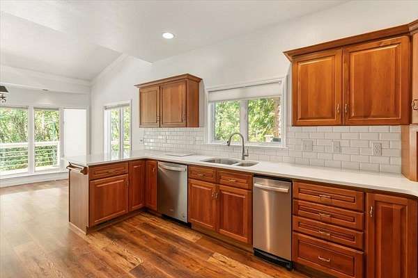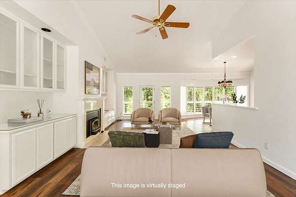 READY TO MOVE IN! This custom designed 3 bedroom/2 bath home on 2.5 acres offers space, comfort, and style in a tranquil setting. The heart of the home is the stunning kitchen featuring quartz countertops, custom cabinetry, and like-new appliances--all seamlessly connected to the spacious living and dining areas. The dining room boasts picturesque windows that fill the space with natural light, while the living room features a fireplace and custom built-ins. Custom Hunter Douglas blinds throughout. The primary bedroom provides privacy and comfort with access to the deck, and the lower level includes two additional bedrooms, a dedicated office space, and abundant storage. Enjoy the outdoors relaxing on the deck or from your private hot tub. Fenced area for pets and detached workshop with wood stove - ideal for hobbies or studio. A covered breezeway connects to the attached 2 car garage. Washer, dryer, fridge, freezer and whole house generator included. Turn-key and ready for you to make it your own! Some photos have been virtually staged for illustrative purposes.