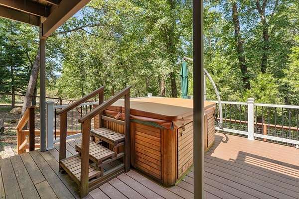- Hot Tub, Landscaping, Lawn, Partial, RV Parking, Trees, Wood