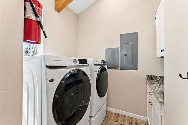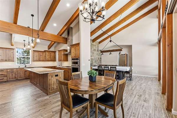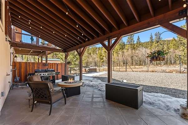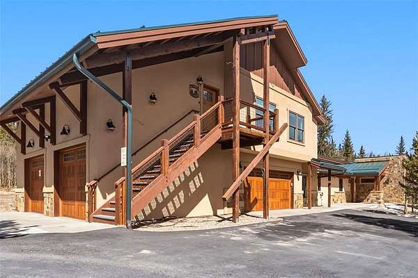 This custom-designed home with beautiful views of Mount Bross and surrounded in aspen glades sits on 5 acres and features a four-car garage. The property includes a ground-level main residence with two bedrooms and a den, along with a separate two-bedroom carriage house apartment on the second level. Each living space offers its own full gourmet kitchen, living area with fireplace, laundry, private entrance, and outdoor living space. The main house on the ground level has a spacious patio with firepit and fenced in yard. The home features a low-maintenance exterior, a durable metal roof, and an asphalt driveway. For fishing enthusiasts, there is access to a fishing easement on the Middle Fork of the South Platte River, located just east of the property. Adding another level of fun is a mini-9-hole putt-putt course. An 8' x 16' shed provides convenient storage for tools or equipment. A 120V/30-amp outlet at the corner of the home allows easy RV hookup or other power needs as well as two 220V/30-amp outlets, one in the workshop and one in the garage for EV charging. Auxiliary battery back-up power for power protection. It is conveniently located only ½ mile to downtown Alma and 15 miles to downtown Breckenridge. Both short-term and long-term rentals are permitted.