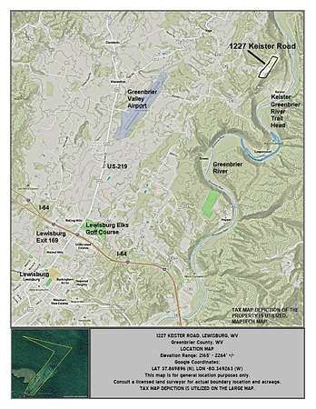 From Lewisburg I-64 Exit 169: 6.8 miles +/- (approximately 15 minutes) From Lewisburg Exit 169, travel US-219 North for 2.2 miles; turn right onto Benedict Lane; travel 2.9 miles; turn left onto Keister Road; travel 1.2 miles; in sharp curve to the right, turn left onto the road leading to the property; travel 1/2 mile to the property's home.