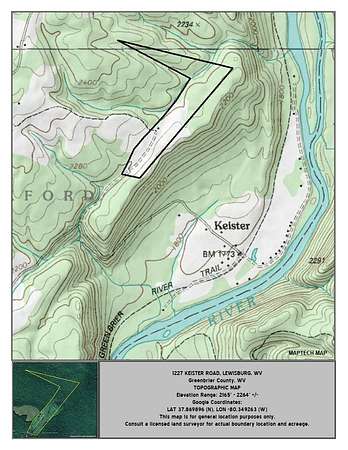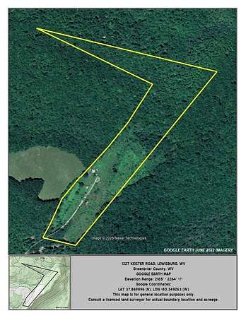 OVERVIEW *Convenient access to the town of Lewisburg and the amenities of the Greenbrier Resort *The farm's privacy and rural character make it an accessible retreat with broad appeal *50 +/- acres = 20 acres in fields; 30+/- acres in forestland *900 +/- sq. ft. farmhouse built in 1942, with 2 bedrooms and 1 1/2 bathrooms *A blue-line stream runs along and through the northwestern portion of the property for about 1/4 mile *Greenbrier County is the state's 2nd largest county and one of the least populated *Major retailers, restaurants, and a modern hospital are found in Lewisburg, a 15-minute drive *1 hour 45 minutes to the Snowshoe Resort, WV largest ski resort and events destination *All mineral rights in title will convey *Suitable for Off - Grid and a rewarding permaculture lifestyle *A quiet private farm lane provides access to paved state roads *Superior access by state maintained paved roads - FedEx, UPS and USPS delivery *Fur bearing wildlife - deer, bear, squirrel, rabbit, bobcat, raccoon, fox, opossum *Winged wildlife - eagles, hawks, owls, ravens, turkeys and Neotropical songbirds *Timber species include oaks, poplar, maple and hickories *The forest and field grasses produce life-giving Oxygen and store Carbon dioxide Spectacular long-range views *Ideal for recreational activities: shooting sports, ATV & horseback riding, hiking, camping, and nature viewing *Low taxes, low population density *Surrounded by large timber tracts and farms in a nice rural neighborhood *Darkest of skies with little or no light pollution for star and planet gazing 20 +/- acres of rich soil offer numerous spots for gardens and to grow hay and various crops *Some "Heritage" trees scattered about estimated at 150+ years old *Electricity and telephone onsite *Elevations ranging from 2165 ft. to 2264 ft. +/- *Jet air service to Chicago O'Hare and Washington DC Dulles *Easy access to Interstates I-64, I-77, I-81 and I-79 LOCATION Google Coordinates: 37.869896?(N), -80.349263?(W) Address: 1227 Keister Road, Lewisburg, WV 24901 Elevation Range: 2165 ft. to 2264 ft. +/- AGRICULTURAL RESOURCES *The property has about 20 acres of nice laying meadows. *A fruit orchard would flourish here. There is a magnificent quince tree and a few apple pear and apple trees scattered about which were part of the original homestead. *The production of Maple Syrup is popular in this region and the property has the maple tree resource to produce gallons of high-grade syrup. *Crops of black walnuts, acorns, beechnuts and hickory nuts are produced each year. *Making honey is also a well-established industry in the area. FOREST/TIMBER RESOURCES The timber resource, consisting of about 30 acres, is well positioned for long-term timber income as well as value appreciation over the coming decades. With an attractive species mix, the timber amenity represents a strong component of value to the investor. The forest resource is composed of quality Appalachian hardwoods. The forest can provide a great deal of flexibility to the next ownership in terms of potential harvest revenue. Capital Timber Value of the timber and pulpwood has not been determined at this time. The forest's predominately well-drained upland terrain has led to a resource dominated by hardwood species. Overall, the species composition is highly desirable and favors hardwood types, consisting primarily of, Sugar Maple, Poplar, Red Oak/Scarlet Oak, White Oak/Chestnut Oak, Soft Maple, Hickory, and a host of associated species (birch, sourwood, black gum, beech). The forest is healthy and there are no signs of pest infestations of Gypsy Moth. The Emerald Ash Borer, which has inundated the entire Northeast US, is present and the Ash component will significantly decline over the next decade. The Eastern Hemlock species is under siege by the Hemlock Wooly Adelgid and the hemlock will continue to decline over the next decade. There have been no forest fires in recent memory.