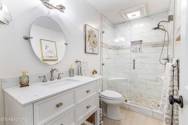 Rare opportunity to own a beautifully updated all brick ranch on nearly 5 acres in South Knoxville. Selling as two parcels totaling 4.74 acres per the tax record and will not be divided. Main homesite is 1.39 acres with an additional 3.35 acre parcel, all zoned agricultural. This one-level 3 bed, 2 bath home offers approx. 2,504 sq ft with custom finishes, real hardwood floors, a spacious layout, and a large primary suite. The kitchen features a stunning custom wood island top, ample workspace, and a walk-in pantry. Enjoy the climate controlled sunroom with brand new sliding windows (lifetime transferable warranty) creating a perfect year-round space. Property includes a 1,140 sq ft detached workshop, 50amp RV hookup, and freshly epoxied garage. Home is on public water with a separate well supplying exterior spigots. In-ground 500 gallon propane tank. HVAC was replaced in Dec of 2023 with a 10 year warranty. A rare combination of quality, acreage, and functionality in a prime South Knoxville location just minutes from downtown, McGhee Tyson Airport, and The University of Tennessee.