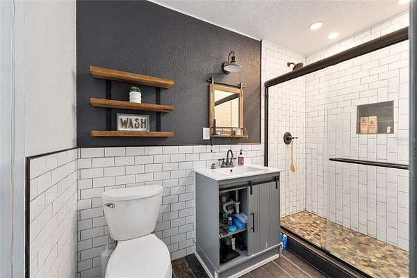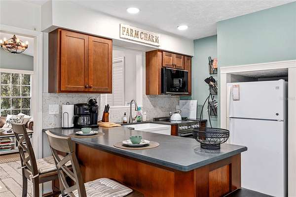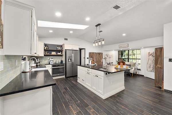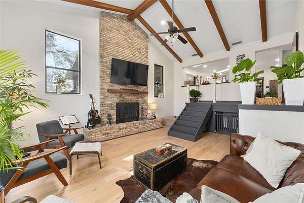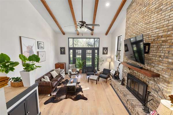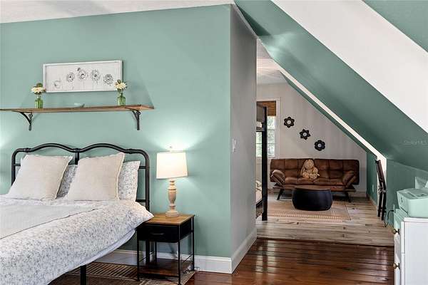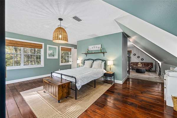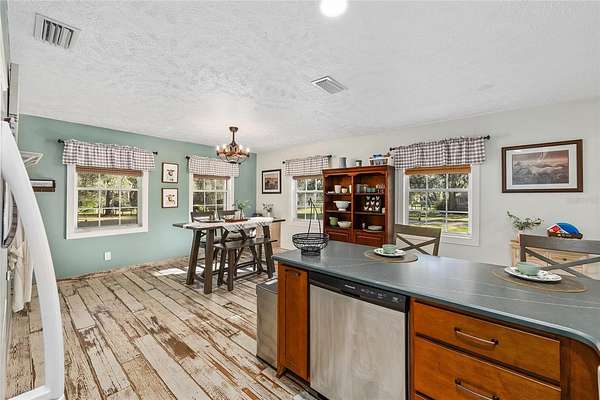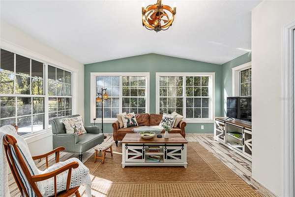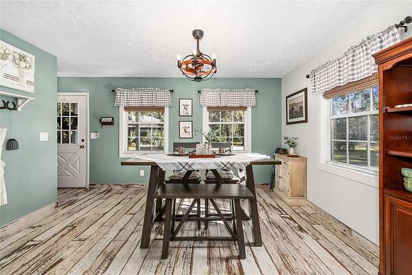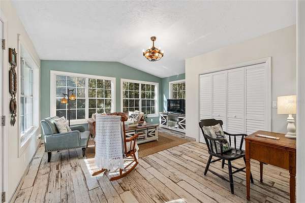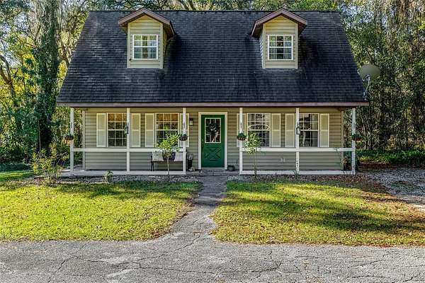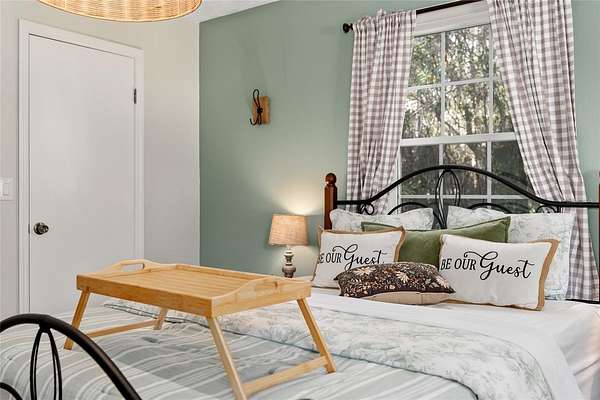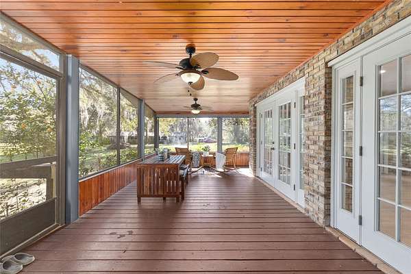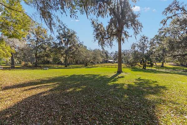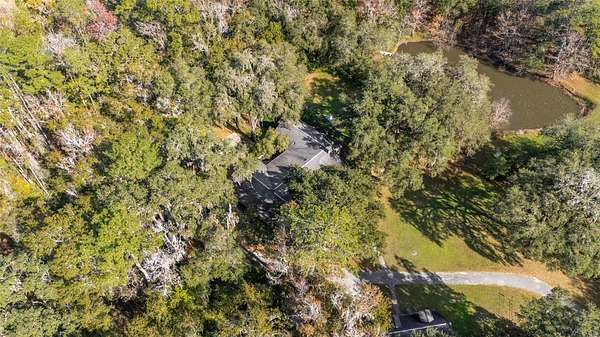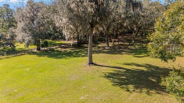 10 acre Retreat with Two Homes offering Rustic Charm only 10 minutes to World Equestrian Center and 7 minutes to HITS-Serene farm nestled in the McCully's/Timberlake neighborhood of NW Ocala, this lovingly updated custom home built in 1988, offers 3 bedrooms and 3 bathrooms with 2,576+/- square feet of living space, situated on 10+ acres with an additional 1,453+/- square foot 2+ bedroom, 2 bathroom guest cottage. Peaceful woodland with private stocked pond and lush pasture. The main home features a lovely wrap-around screened porch, cozy lower level living room with wood burning fireplace, updated open country kitchen and a large flex space. The primary bedroom offers vaulted ceiling, walk-in closet and updated en-suite. Additionally there are two guest bedrooms, one with en-suite. The property is fenced and cross fenced and has an older concrete aisle shed row style barn that needs some work, featuring four stalls, tack room, feed room, large workshop/storage room, equipment storage and 1/2 bath with laundry hook up.The absolutely adorable updated two story guest cottage has been successfully used as a Airbnb with its convenient location to HITS, World Equestrian Center and folks looking for a Farm Stay respite. Timberlake is an equestrian friendly community with extra wide grass shoulders to ride off property. This property is the epitome of a haven offering the best of both worlds, a rural lifestyle in a friendly tight-knit community.