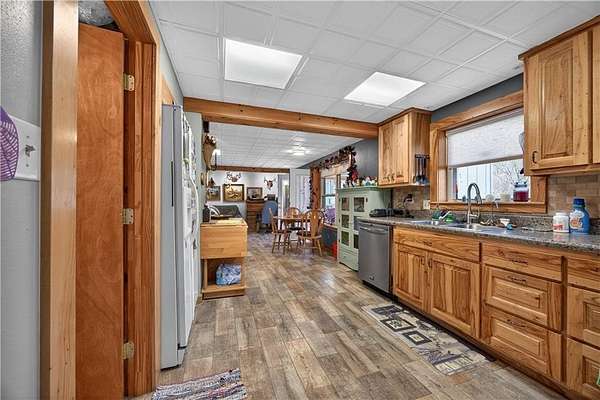 Est $2,281/moCountry living on 2.25 acres with nice 4 bed 4 bath two level home. Native stone fireplace, Built in Concrete Storm Shelter. Work shop, green house and water well for all your gardening needs. Two nice sized storage building with Electric and Water. Boat launch 3 blocks from the house. Come add your updates and make this property your home.