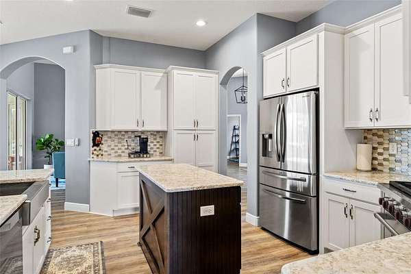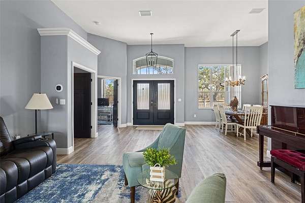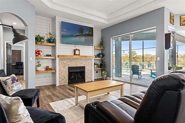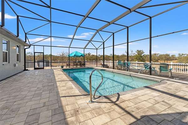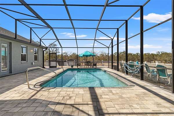 Welcome to this exceptional private retreat! Built in 2022 and situated on just under 10 fully fenced acres at the end of a quiet dead-end street, this 5-bedroom POOL home boasting 3500 heated square feet offers the perfect blend of modern luxury and peaceful country living. Located in a non-flood zone and zoned Agricultural, this property provides peace of mind with the flexibility for livestock, farming, and potential Greenbelt tax benefits. A private electric double gate welcomes you onto this beautiful property. Upon entering the home, pocket sliding glass doors span the back wall filling the space with natural light, creating a bright, open, airy atmosphere that enhances the home's seamless flow. A living space and dining area sit just off the entry, creating an inviting layout that's functional and ideal for entertaining. Designed with a split floor plan, the spacious primary suite features TWO walk-in closets with built-in shelving. The spa-like ensuite bath has dual vanities, granite countertops, a private water closet, linen closet, soaking tub, and an oversized walk-in shower with dual heads. The second bedroom is conveniently located just off the primary suite with a connecting door--ideal for a nursery, home office, or flex space. Across the home, the third and fourth bedrooms are generously sized with access to the second bath that offers an exterior door leading to the pool area. The fifth bedroom alone spans over 730 sq ft offering incredible versatility with its own private entry from the pool deck--perfect for a hobby room, homeschool classroom, theater room, or potential in-law suite. The chef inspired kitchen is truly the centerpiece of the home. With a massive 6-burner gas stove with oven and a pot-filling faucet, this kitchen has both function and style. The additional built-in wall oven and microwave combo provide extra cooking capacity for entertaining. With granite countertops, large center island, and breakfast bar, this kitchen truly offers exceptional storage, workspace, and flow. Step outside using one of the two sliding glass pocket doors to enjoy the screened-in saltwater pool with expansive deck space for lounging and grilling. Beyond the enclosure, a large wraparound deck overlooks the property and includes a hot tub. A brick-paver path leads to a gazebo and firepit area with ample seating. The property is thoughtfully equipped with a full home generator, water softener, central vacuum, and owned propane tank that service the stove, water softener, pool deck grill line, and gives a connection for a future pool heater. With almost 10 acres Zoned AG, this property offers eligibility for Greenbelt classification, which may provide significant property tax savings for qualifying agricultural use. With a corral, two large sheds, multiple chicken coops and runs, and large open acreage, the property is ready to support livestock, farming, or other pursuits. Located just 10 minutes away from an abundance of shops, restaurants, and main roads, this location is more than ideal. This exceptional property offers land, privacy, a newer home, and a pool, all in one incredible package.