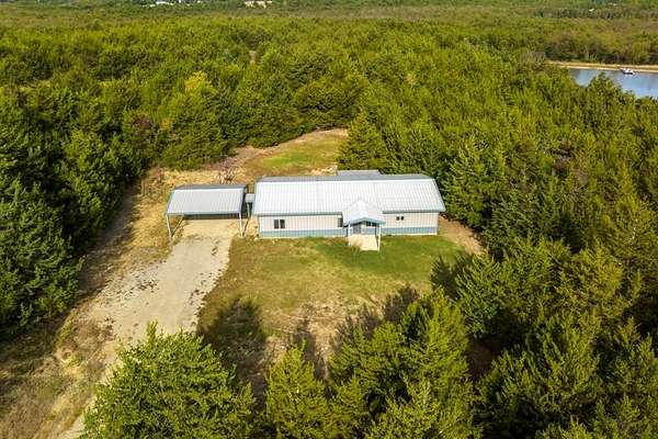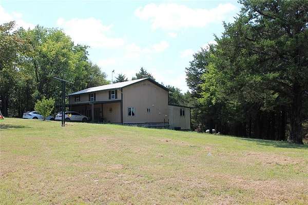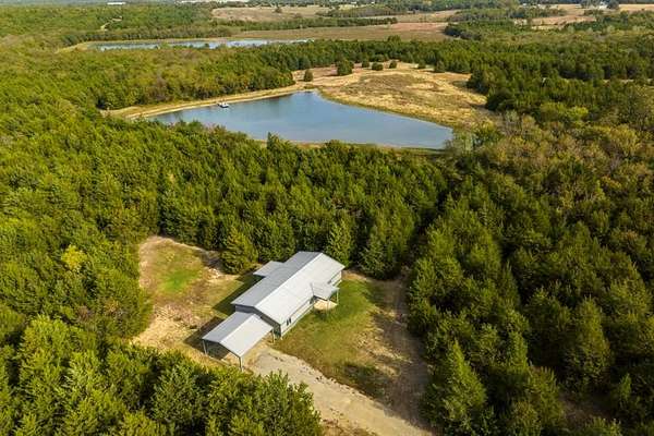 FIFTY TWO ACRES with a POND with not only one, but TWO HOMES on the property and a PRIVATE POND and a HUGE SHOP with pass through shop doors*Enjoy morning coffee by the pond, raise livestock, grow your own garden, or ride ATVs across the open fields*This property offers true Texas living at its best*Fenced and separate roads for versatility, with plenty of room to expand, build, subdivide, and ideal for multigenerational or community living*Located in a quiet, peaceful area surrounded by big beautiful trees*Just a short drive to the newly completed Bois d'Arc Lake for fishing and recreation*HOME1 is two story, each story with a complete home. Full 3-2 downstairs w kitchen dining etc, then walk upstairs to a full 3-2 home with full kitchen dining etc. Beautiful covered front porch and large covered back patio with a fantastic scenic view*SHOP has electric and plumbing and plenty of space for all the toys you would want* Circle drive for easy access* Down the hill you will find the HOME2 Barndo built in 2019 with a 2 car carport and plenty of privacy. 3-2 with OPEN CONCEPT build. Separate bedrooms. Beautiful kitchen island and decorative lighting. Primary bedroom and ensuite bathroom has additional space for a sitting area or office perhaps or whatever your heart desires but you have to come see it to believe it!
