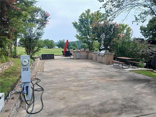 This beautifully landscaped lot is a pull-in and will accommodate up to a 45' motorhome ( class A, and C) full hook ups with 30/50 amp power, parking space for golf cart and car(s). It offers a beautiful outdoor kitchen complete with large gas grill, gas 2-burner stove, refrigerator and sink, plus storage drawers and cabinet storage below, and is complemented with granite countertops. An additional large patio provides a great place for your outdoor furniture and spending your leisure time. There is also a centrally located guest pool, as well as an owner's pool and clubhouse. A convenient on-site courtesy dock is available for guests who enjoy boating. Furnishings will not convey. 30 minute drive to Branson