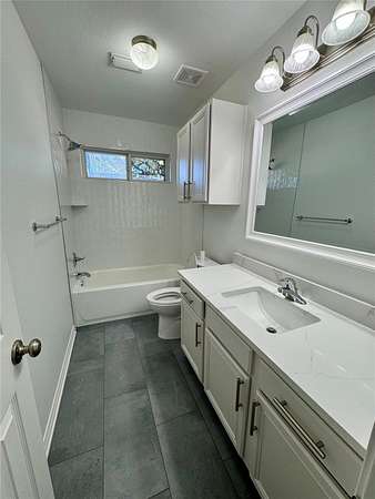 Welcome to a property offering endless possibilities, all on a sprawling 1.797-acre lot with no city restrictions or HOA. The main home has been meticulously remodeled, showcasing a brand-new kitchen with updated cabinets, countertops, and appliances. Modern wood-vinyl flooring flows throughout the living areas, while bathrooms feature fresh tilework. A luxurious primary suite awaits with a completely remodeled bath, including new cabinets, countertops, a soaking tub, and a walk-in shower. In addition to the 2,345 sq ft main house, the property includes a 688 sq ft guest house, a perfect income-producing residential rental. A detached 418 sq ft building, easily convertible from storage to an office or workshop, adds further flexibility. With existing income from an on-site advertising sign and the guest house, this property is not only a stunning home but also a smart investment.