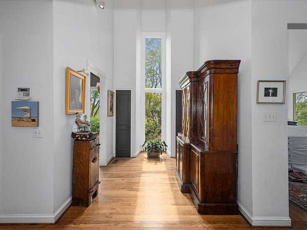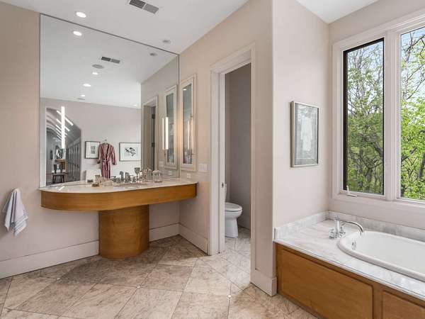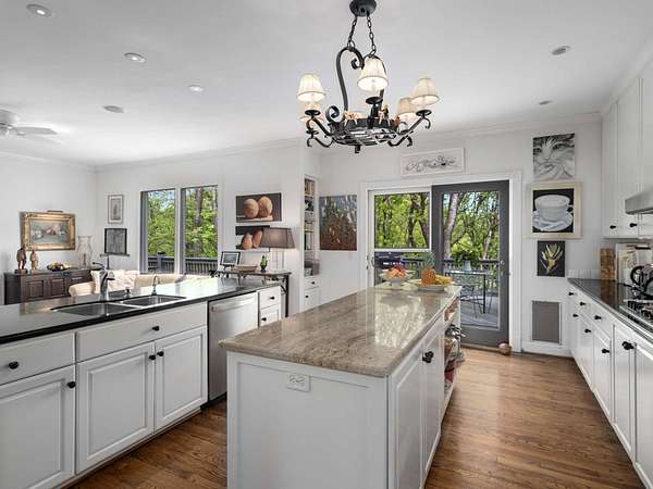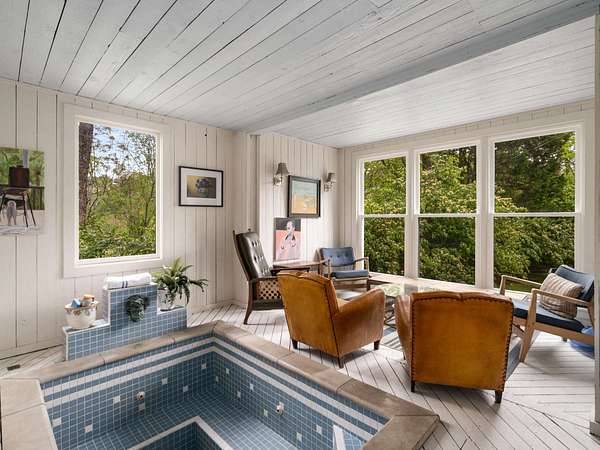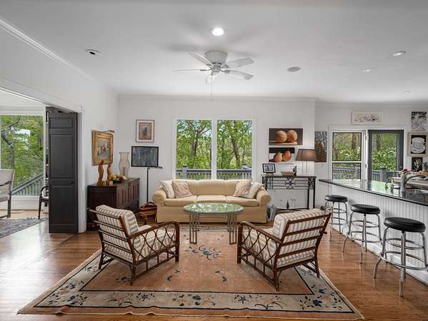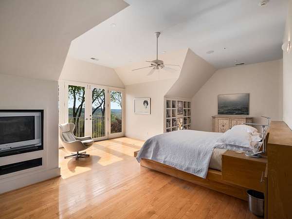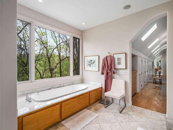 Stunning ridgetop retreat surrounded by nature, offering the perfect blend of serene seclusion and effortless city access. Soaring vaulted ceilings and expansive windows, natural light fills every corner of this contemporary-style home. The gourmet kitchen features a custom island with built-in storage, double ovens, and generous counter space with a sitting area for gathering. Unwind in your private indoor hot tub. The spacious upstairs primary suite is a sanctuary of comfort, complete with a fireplace, cozy sitting area, private balconyand floor to ceiling windows for taking in the spectacular view--perfect for beginning and ending your day in peace. Take in breathtaking sunset views over rolling hills from the expansive screened-in porch, or host summer gatherings on the back deck designed for grilling and entertaining. Set atop a premier ridge in Forest Hills, this home offers a truly unmatched lifestyle.
