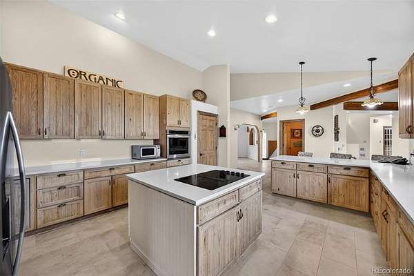 - Built-In Features, Ceiling Fan(s), Central Vacuum, Eat-In Kitchen, Entrance Foyer, Five Piece Bath, High Ceilings, In-Law Floorplan, Kitchen Island, Laminate Counters, Open Floorplan, Pantry, Primary Suite, Quartz Counters, Radon Mitigation System, Smoke Free, Stone Counters, T&G Ceilings, Tile Counters, Vaulted Ceiling(s), Walk-In Closet(s), Wet Bar
