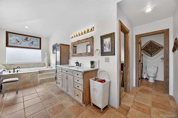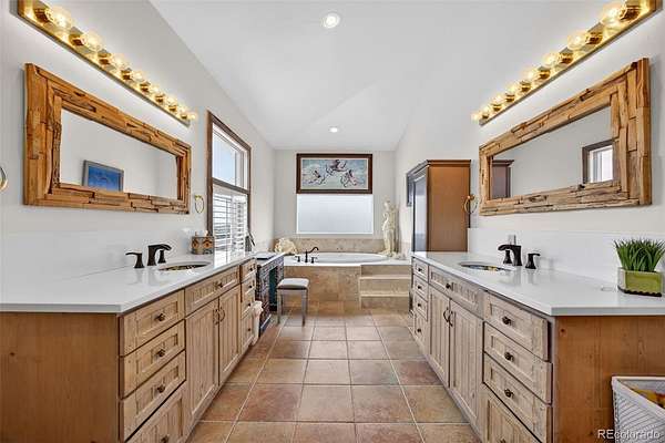 The kitchen is designed for functionality and gathering, with generous counter space, abundant cabinetry, and connection to adjacent living areas ideal for hosting and everyday living. The primary suite is a true retreat, complete with its own fireplace and spa inspired bath featuring dual vanities, a soaking tub, and walk in shower. Additional bedrooms and living areas provide versatility for guests, offices, or creative use.