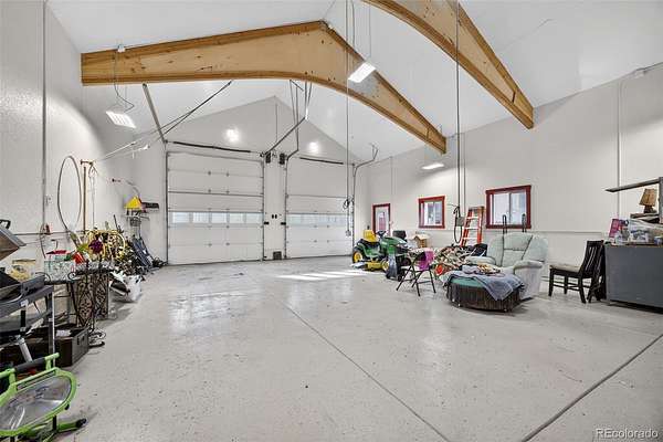 Outdoor living is equally impressive, with expansive decks and patios perfect for enjoying Colorado sunsets, mountain air, and city lights. A standout feature of this property is the extensive garage and workshop spaces, including large, well built structures with soaring ceilings, concrete floors, ample lighting, and room for multiple vehicles, equipment, or specialized projects.