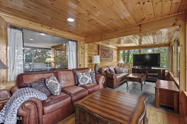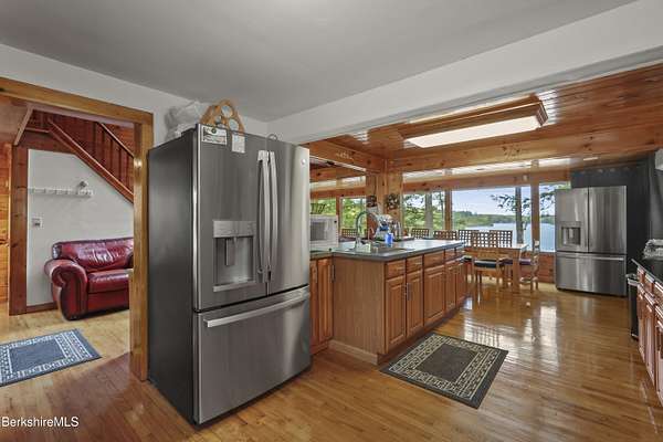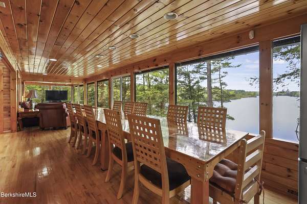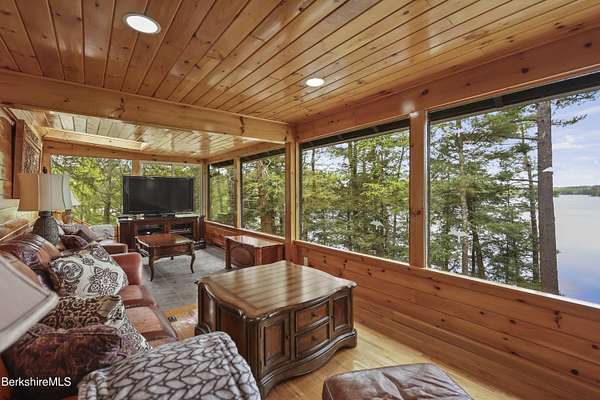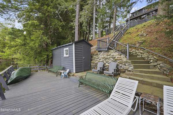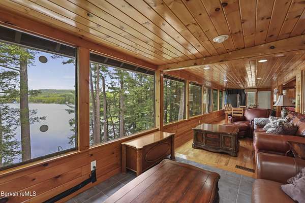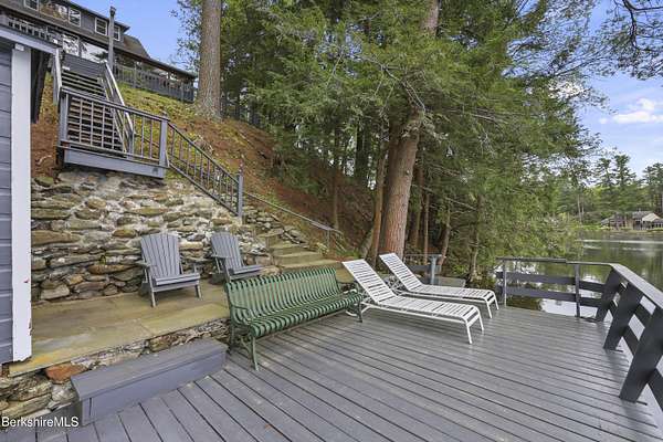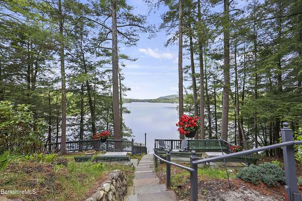 BERKSHIRE LAKE FRONT WITH BEAUTIFUL WESTERN VIEWS ACROSS THE LENGTH OF LAKE BUEL. Premiere motor boat lake. With 6 bedrooms and 3 full baths there is room for your extended family or friends. Walls of windows allow lake views from most rooms. Open plan for relaxing after a long day swimming, boating, fishing or relaxing on the water. Lovely out door areas include a deck, patio and steps to your dock. Under 10 minutes to downtown Great Barrington and a short drive to Berkshire County culture, dining and entertainment.
